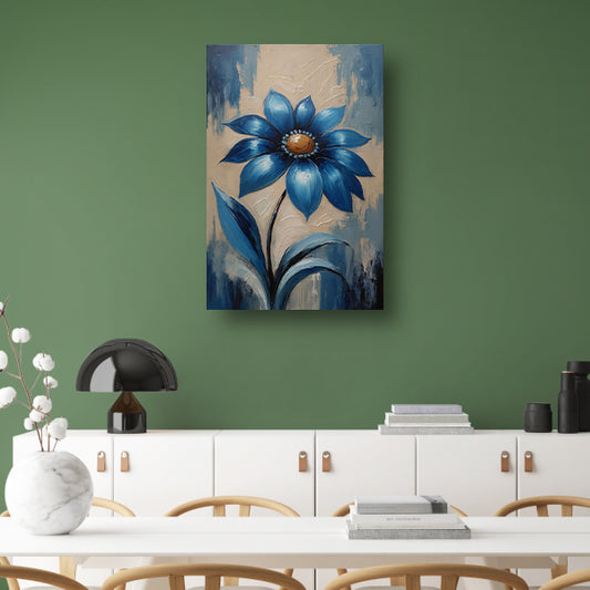 Abstracte Indigo Bloem met Dynamische Bladeren canvas