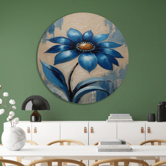 Abstracte Indigo Bloem met Dynamische Bladeren aluminium muurcirkel