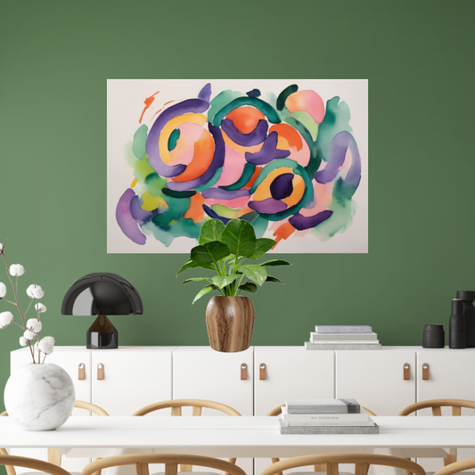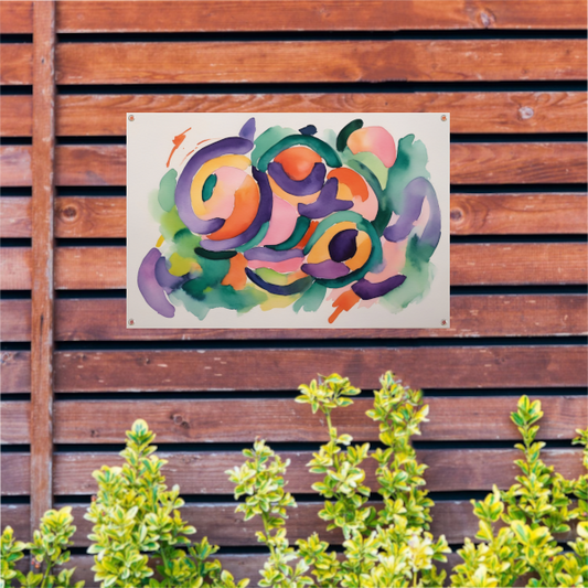 Abstracte kleurencompositie met speelse lijnen tuinposter