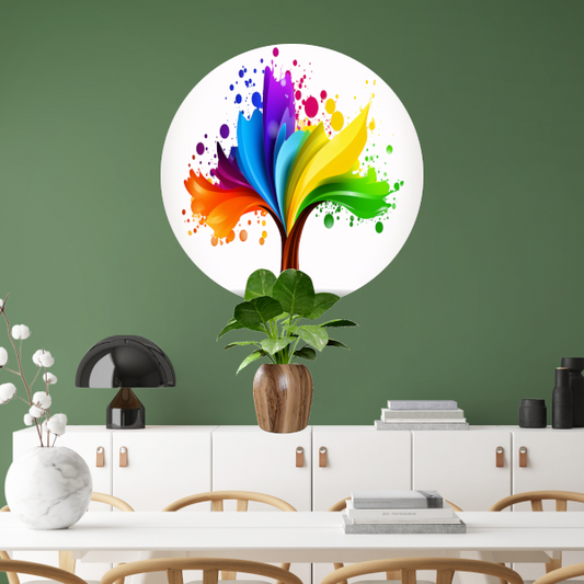 Abstracte Kleurenboom in Spetterend Design forex muurcirkel
