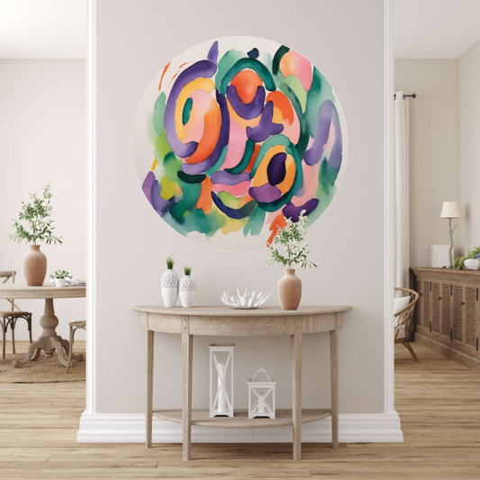 Abstracte Kleurendans in Aquarel forex muurcirkel