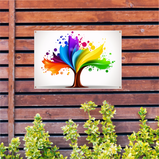 Abstracte Kleurenboom in Spetterend Design tuinposter