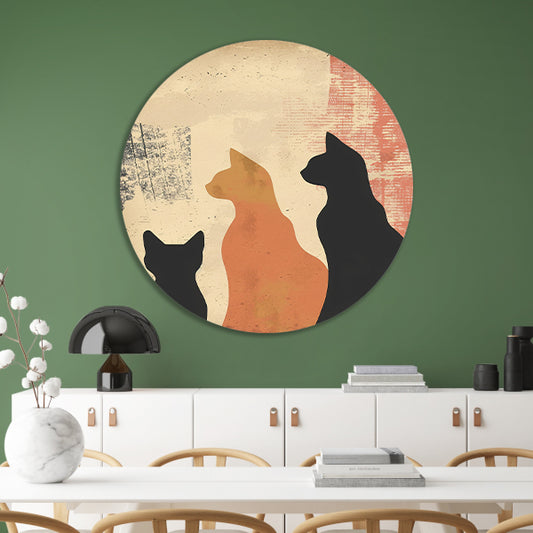 Abstracte Katten Silhouetten op Textuur forex muurcirkel