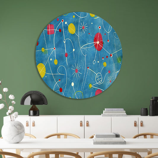 Abstracte kleurencompositie met speelse lijnen aluminium muurcirkel