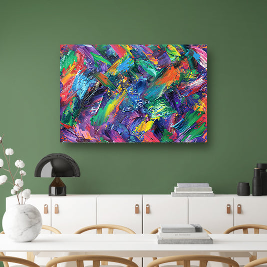 Abstracte kleurenexplosie met dynamische penseelstreken canvas