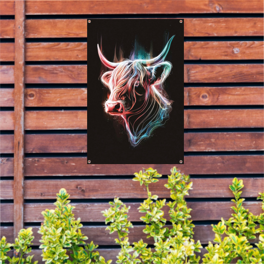 Abstracte Kleurendans van een Schotse hooglander tuinposter