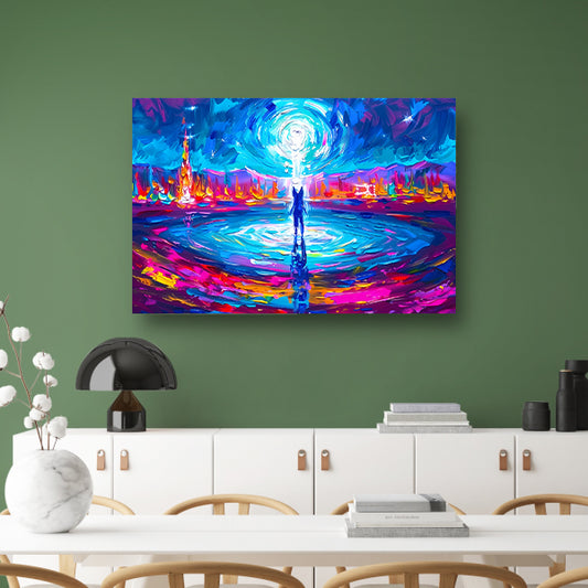 Abstracte kleurenexplosie met mensfiguur canvas met baklijst