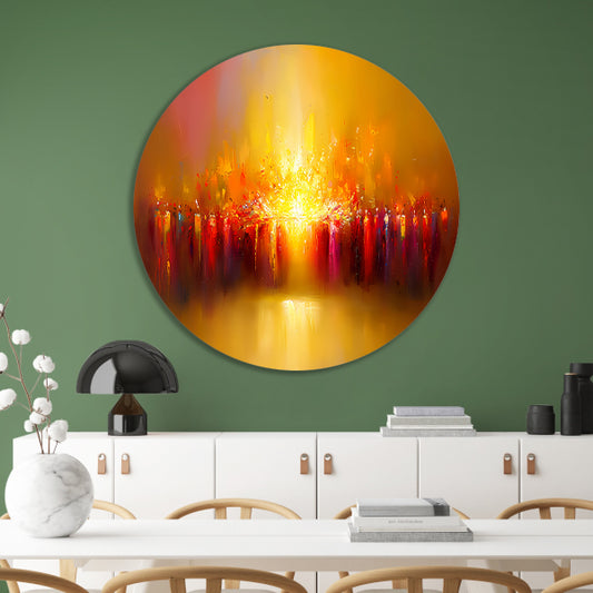 Abstracte kleurenexplosie met vulkaan thema aluminium muurcirkel