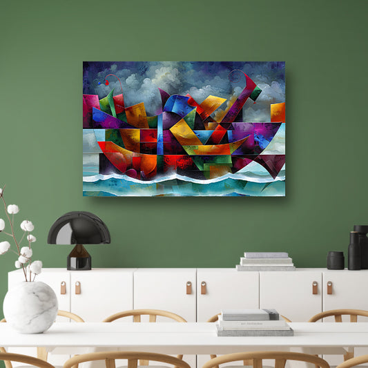 Abstracte Kleurenstorm met Golven en Boot acrylglas