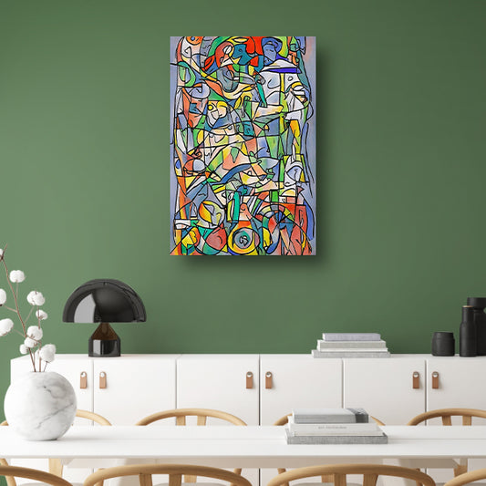 Abstracte kleurrijke figuren en vormen schilderij canvas
