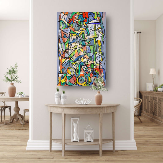 Abstracte kleurrijke figuren en vormen schilderij canvas met baklijst