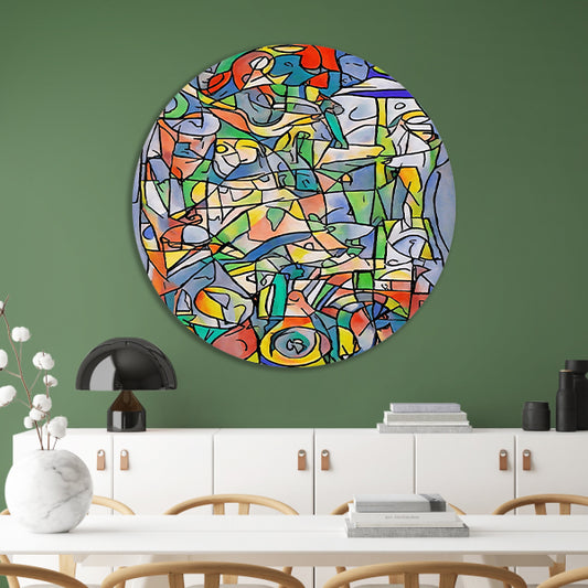 Abstracte kleurrijke figuren en vormen schilderij forex muurcirkel