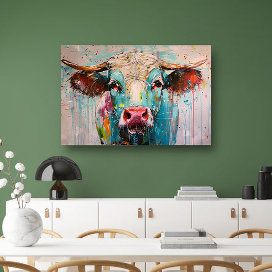 Abstracte kleurrijke koe schilderij op canvas acrylglas