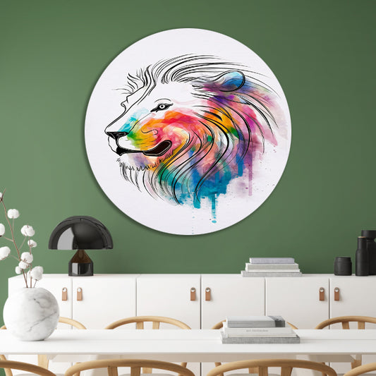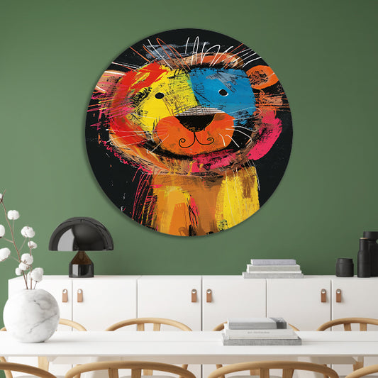 Abstracte Kleurrijke Leeuw Schilderij aluminium muurcirkel