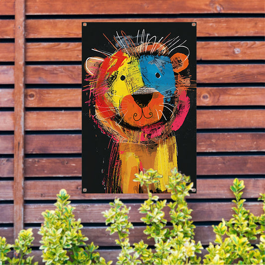 Abstracte Kleurrijke Leeuw in Lijnen tuinposter