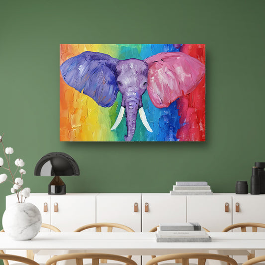 Abstracte kleurrijke olifant schilderij canvas met baklijst