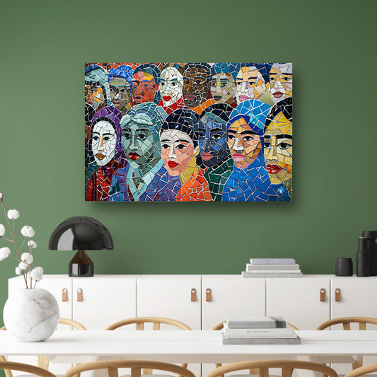 Abstracte kleurrijke mozaïek van diverse gezichten canvas