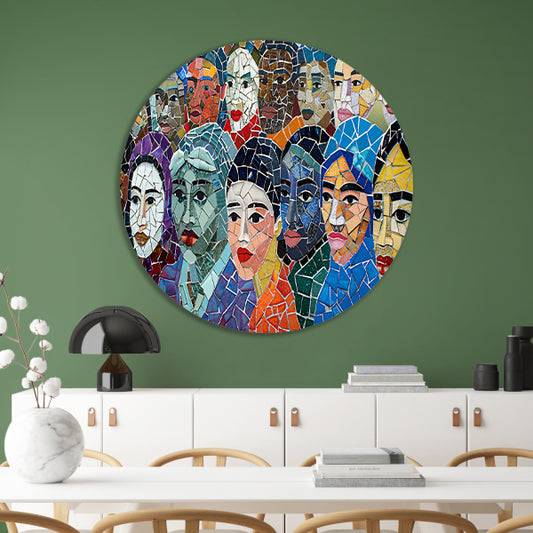 Abstracte kleurrijke mozaïek van diverse gezichten aluminium muurcirkel