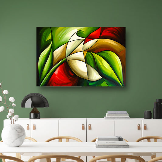 Abstracte kleurrijke roos en bladeren schilderij canvas met baklijst