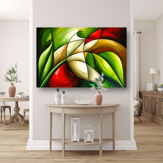 Abstracte kleurrijke roos en bladeren schilderij acrylglas
