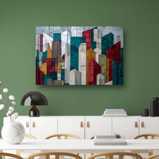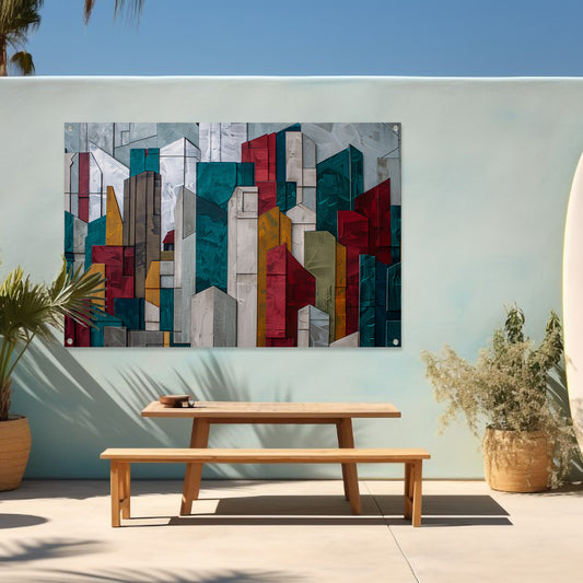 Abstracte kleurrijke skyline met geometrische vormen acrylglas