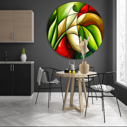 Abstracte kleurrijke roos en bladeren schilderij forex muurcirkel