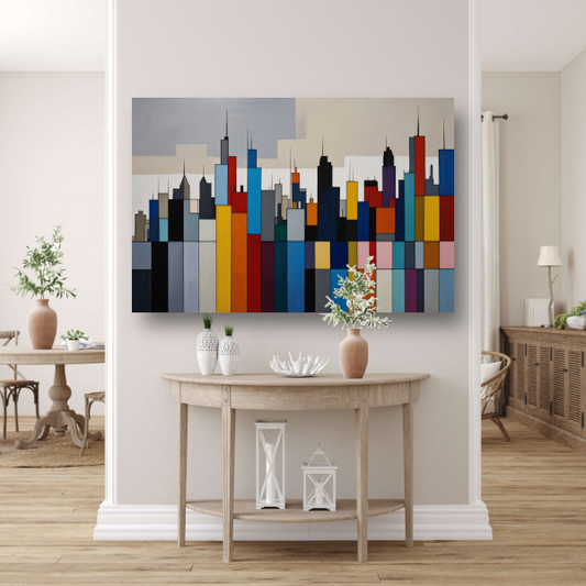 Abstracte kleurrijke stadsgezicht skyline canvas