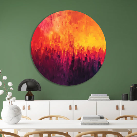 Abstracte kleurrijke vlammen in moderne kunst aluminium muurcirkel