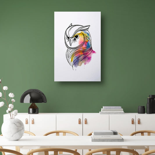 Abstracte Kleurrijke Uil in Lijnkunst canvas met baklijst