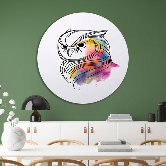 Abstracte Kleurrijke Uil in Lijnkunst aluminium muurcirkel