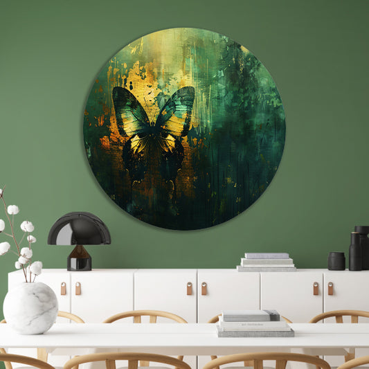 Abstracte kleurrijke vlinder op dynamische achtergrond aluminium muurcirkel