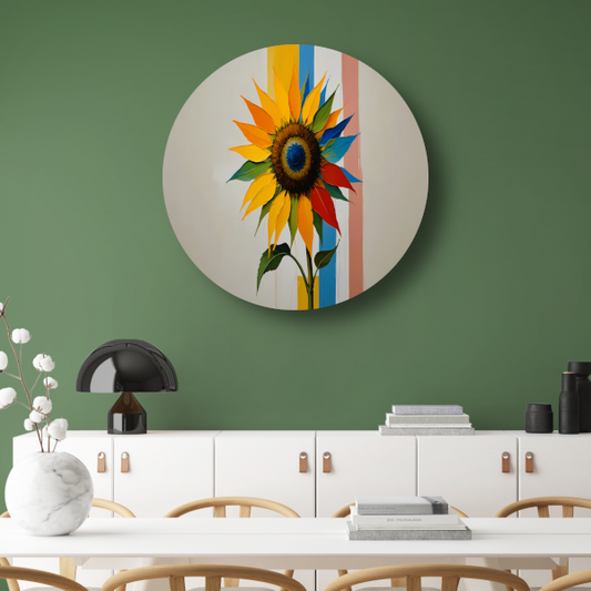 Abstracte Kleurrijke Zonnebloem op Gestreepte Achtergrond forex muurcirkel