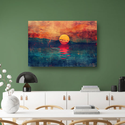 Abstracte kleurrijke zonsondergang over water canvas