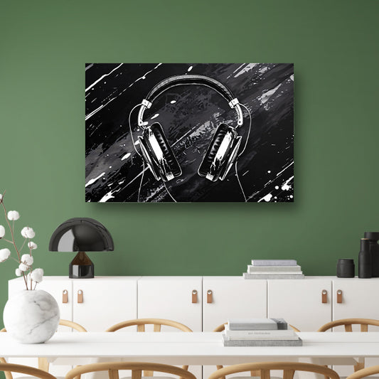 Abstracte koptelefoon met spetterende achtergrond acrylglas