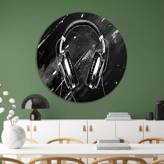 Abstracte koptelefoon met spetterende achtergrond aluminium muurcirkel