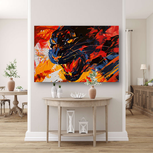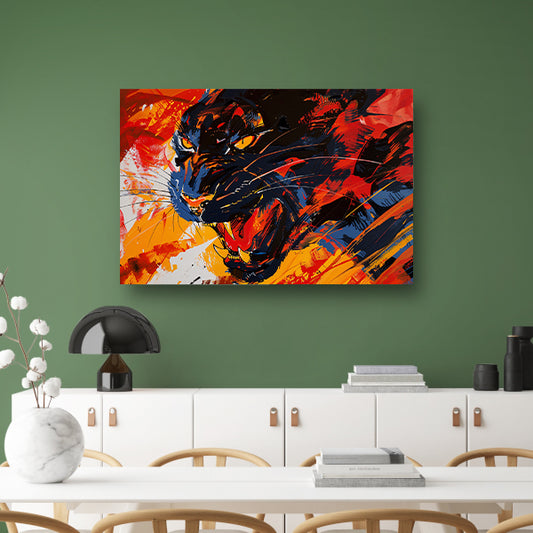 Abstracte kleurrijke zwarte panter schilderij canvas
