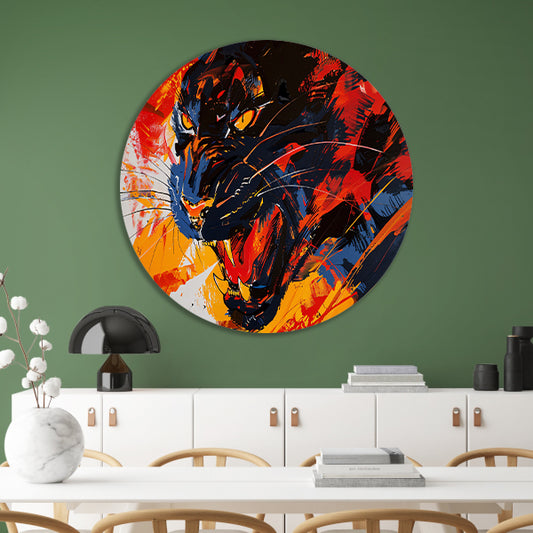 Abstracte kleurrijke zwarte panter schilderij aluminium muurcirkel