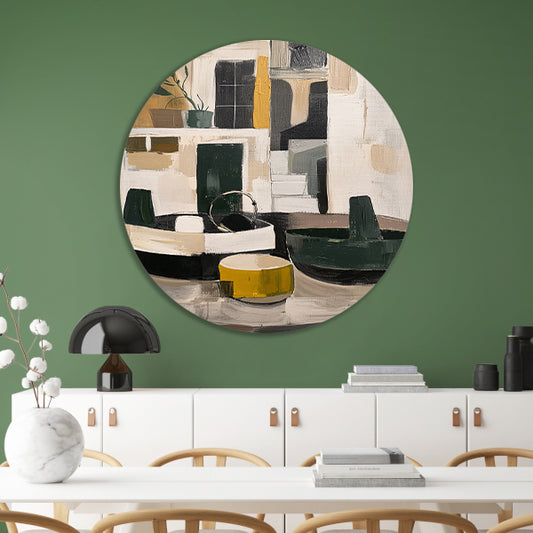 Abstract Compositie met Vormen en Kleuren aluminium muurcirkel