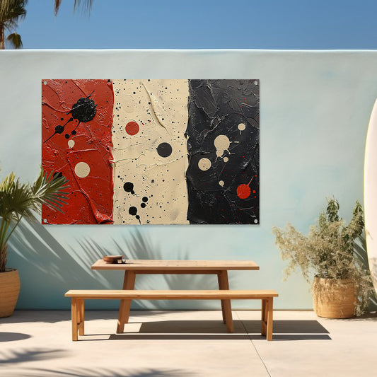Abstract compositie rood wit zwart aluminium muurcirkel