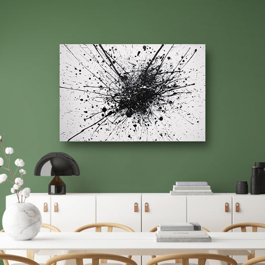 Abstracte kunst met zwarte en witte verfspatten canvas