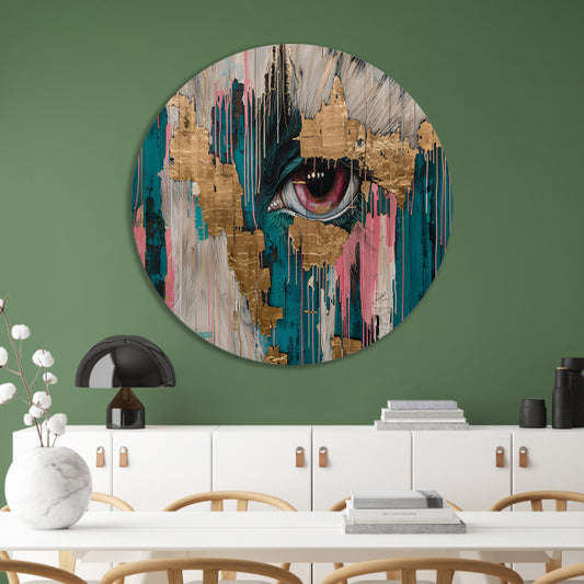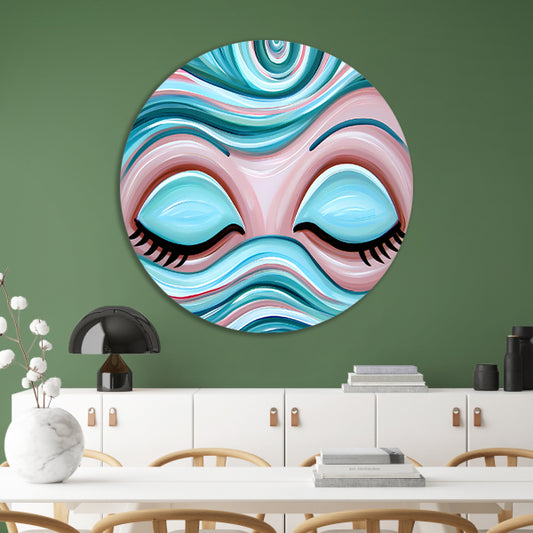 Abstracte kunst van gesloten ogen met golven aluminium muurcirkel