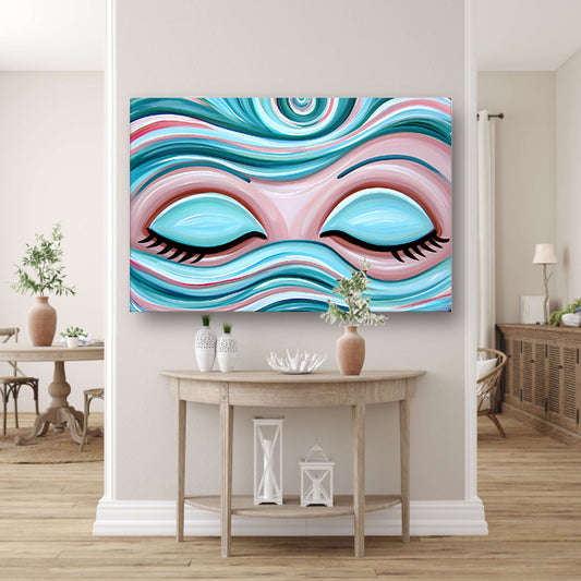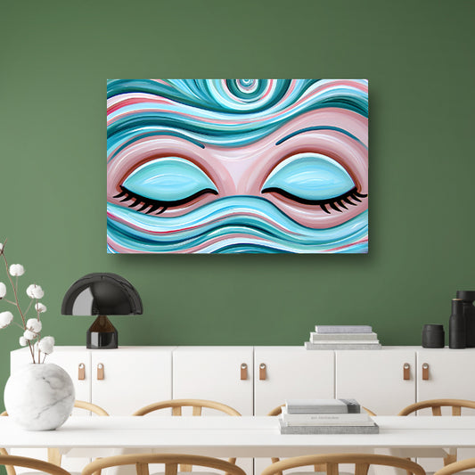 Abstracte kunst van gesloten ogen met golven canvas met baklijst