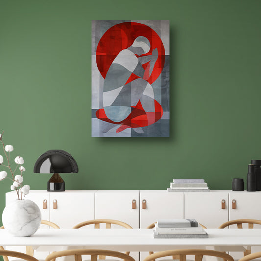 Abstracte kunst van geknielde persoon in cirkel canvas met baklijst