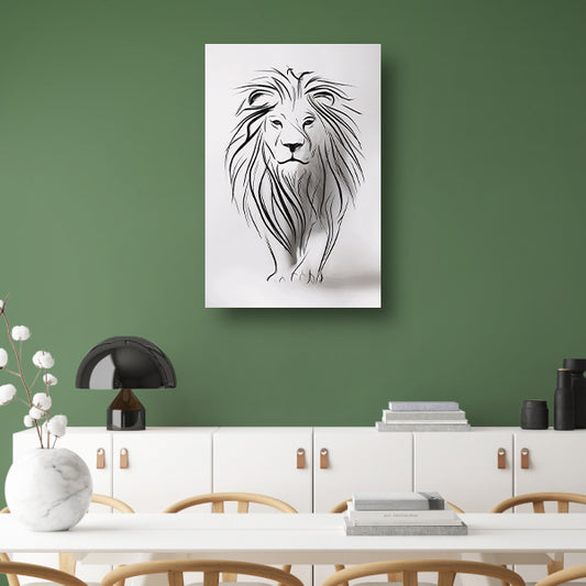 Abstracte leeuw in minimalistische lijnen canvas met baklijst