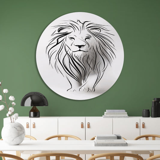 Abstracte leeuw in minimalistische lijnen aluminium muurcirkel
