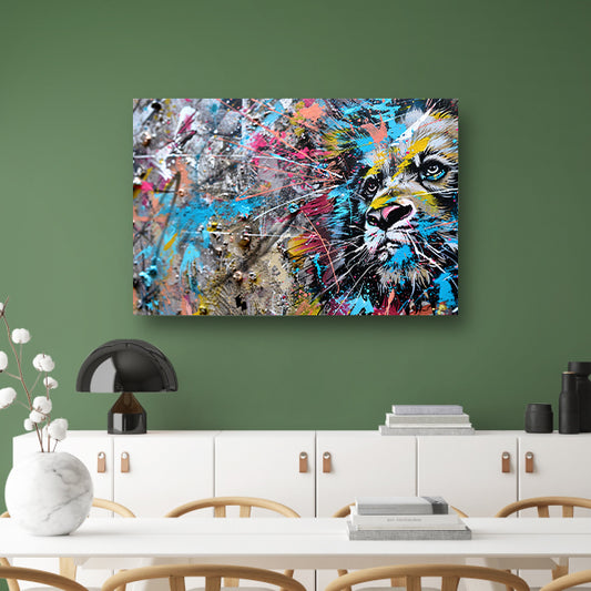 Abstracte leeuw in levendige graffiti-stijl canvas met baklijst