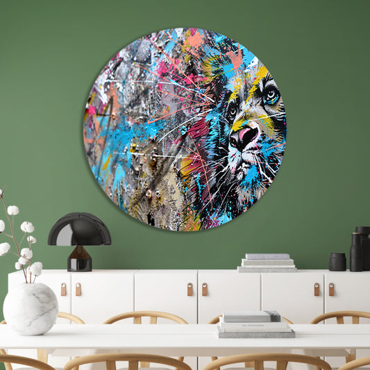 Abstracte leeuw in levendige graffiti-stijl aluminium muurcirkel