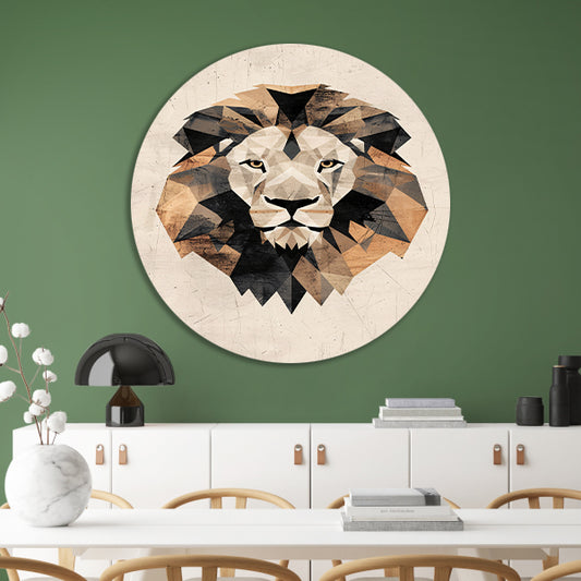 Abstracte Leeuw in Geometrische Art Deco Stijl aluminium muurcirkel