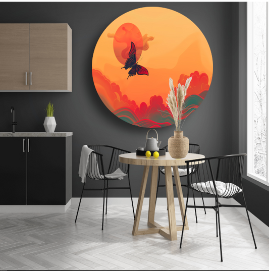 Abstracte lijnencompositie in primaire kleuren aluminium muurcirkel