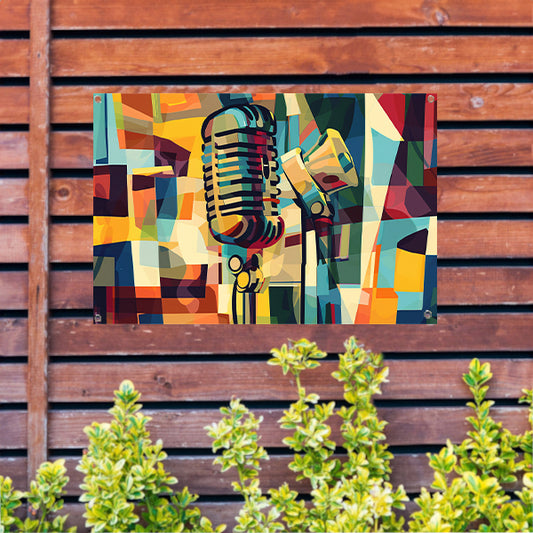 Abstracte microfoon in levendige kleuren aluminium muurcirkel